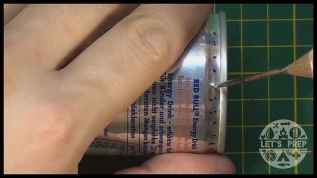 1. Usar el punzón para perforar la lata en las marcas que acaba de hacer.