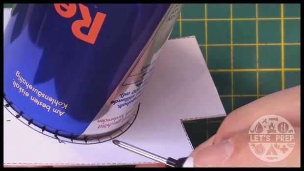 1. Utilice la plantilla más grande y coloque cuidadosamente sobre la parte superior de la lata