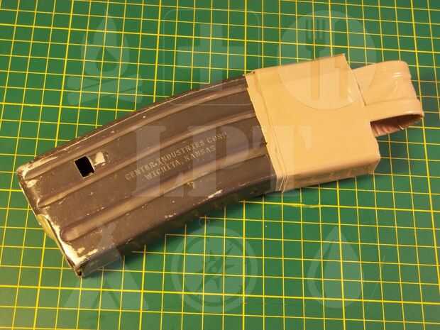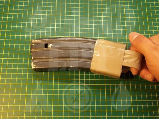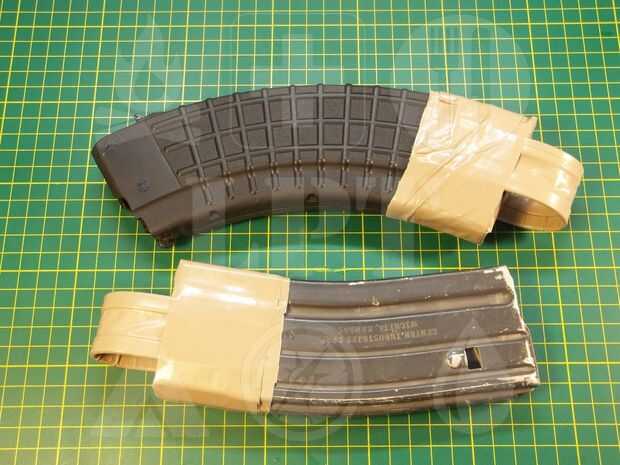 En la última foto se pueden ver ambas revistas modificadas para este proyecto. Le recomiendo que vea el video si quieres ver cómo hacer esta mod con un AK47 magazine.