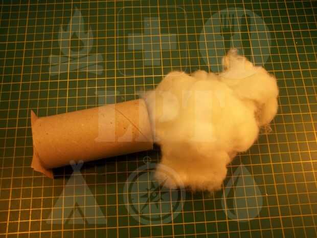 3. Mientras que la cera se derrite puede comenzar a rellenar el tubo de cartón con bolitas de algodón. Aunque quieras un montón de algodón allí Evite para agregar demasiado. Al final debe todavía poder comprimir fácilmente el algodón.