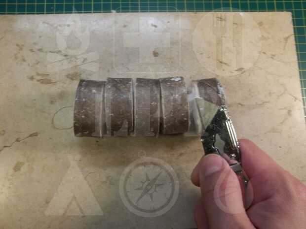 2. Con su cuchillo lentamente puede cortar las piezas individuales. Usted debe ser capaz de hacer cinco arrancadores de fuego de un solo papel higiénico del rodillo.