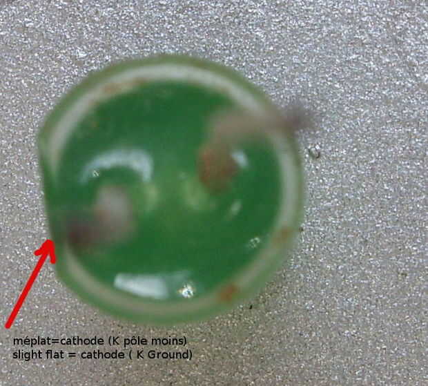 LED vue de dessous en voit le méplat efectúa la broche moins, c ' est aussi la broche la plus courte