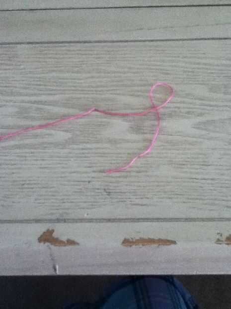 Siga los pasos anteriores 1) doblar el extremo pequeño en el extremo largo. 2) ponga sus dedos a través del lazo. 3) agarre la cadena de largos extremos. 4) lo pase pero no apretado o no se deslizará.