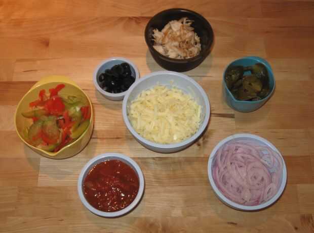 empecé a hacer en mi estudio donde he tenido días de mucho trabajo, un plato caliente y poco tiempo para comer! Sigue siendo un favorito para un bocado rápido :)Esto es lo que se necesita:1. aceite de oliva2. frescos tortillas3. pimienta queso4. chip