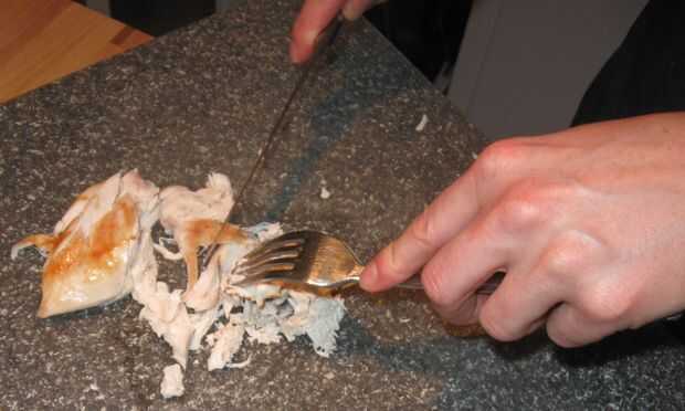 Lugar el pollo en la bandeja para asegurarse de que está cocinado completamente y uniformemente.