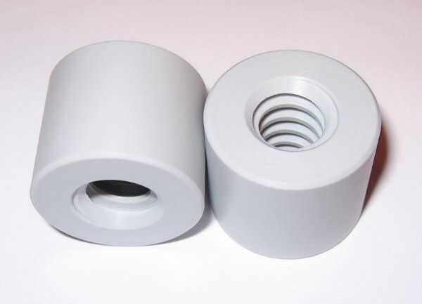 Las tuercas trapeciales fueron hechas desde cero, de POM o polioximetileno que es "un termoplástico de ingeniería utilizados en piezas de precisión que requieren alta rigidez, baja fricción y estabilidad dimensional excelente "