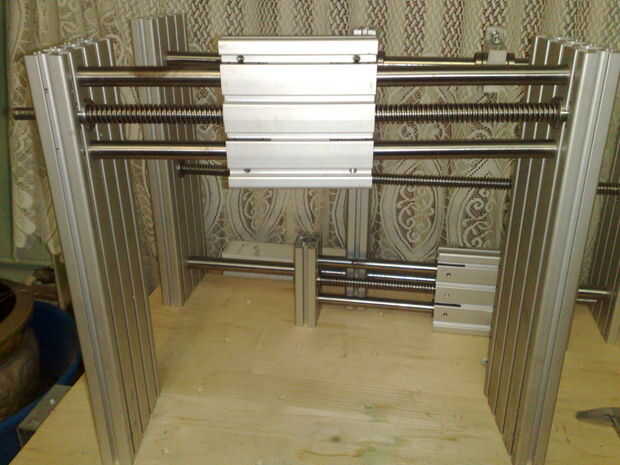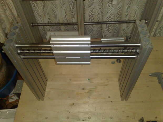 A continuación montar 400 x 120 x 30 perfiles de aluminio en cada extremo de los ejes y fijarlos junto con las 4 piezas de tornillos M5x40mm.