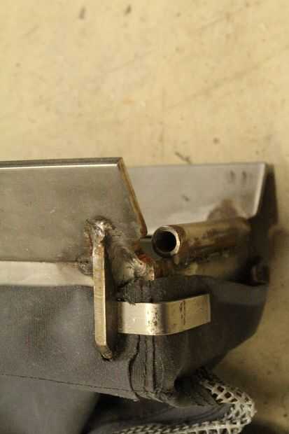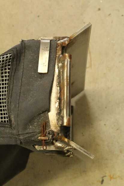 Las aletas se sujetaron al ángulo aproximado luego punto soldado con autógena a cada extremo, esto permitió el ángulo fijado golpeando la tapa con un martillo. Entonces fueron fijados en lugar con la parte inferior y superior de 4 soldaduras. Fue en esta etapa que lo peor de la deformación se produjo como se puede ver en la foto pero yo estaba feliz con que bombear hacia fuera como esta.