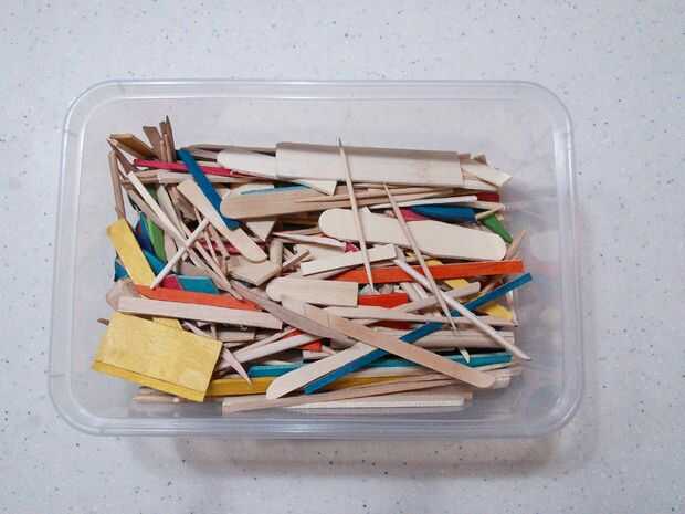 Además de tacos de madera, palillos del popsicle (varios tamaños también!), palillos, cucharas de helado de madera y palillos de dientes, materiales utilizados eran sobre todo de mi caja de repuestos.