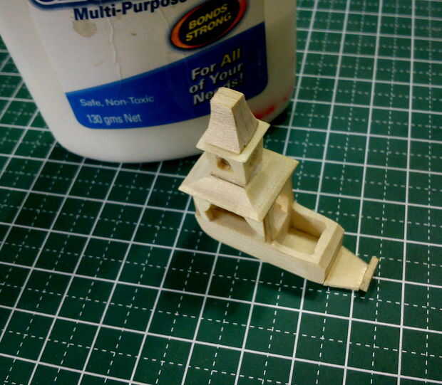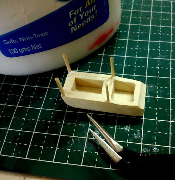 Finalmente fósforos forma fueron utilizadas para los pilares de la torre del campanario. Estos estaban pegados a la parte trasera y la parte media de la coupe. Los pilares apoyará techo/campanario de la carroza de base.