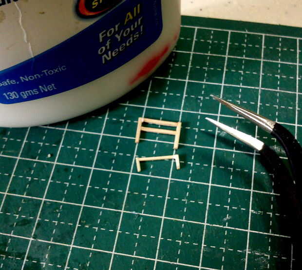El marco de parabrisas principal fue hecho de palitos de fósforo menor cortadas en pequeñisimas 4 cuatro tiras y el pegan. La visera del parabrisas fue hecha de materiales similares, aunque mucho más pequeño que el marco.