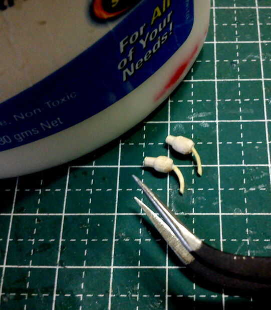 Cada uno de lo faro 'Sostenedor de vela' era de un pequeño taco tallado utilizando un accesorio de lijadora de tambor fino. Cortar cada lámpara de la espiga usando un disco de corte reforzado un Dremel Minimite. La parte inferior la mitad fue enarenado en forma con un accesorio de la lijadora de disco fino también montado en un Dremel Minimite.