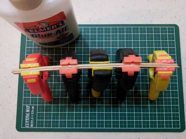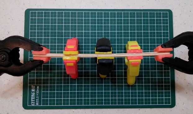 Los acoplamientos de frontal y popa repulsor montajes asegura el cañón láser y asambleas a las alas del snowspeeder. Los pasos para fabricar el frontal acoplamientos y montajes repulsor popa fueron similares con los materiales utilizados como la principal diferencia. Un agitador de café madera fino y grueso fue utilizado para los montajes de repulsores de popa mientras que los acoplamientos frontal utilizan 2 dos agitadores de café madera fina.