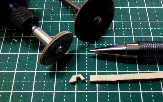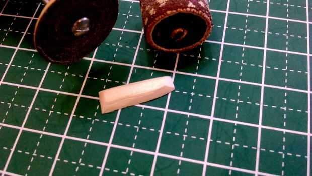 Después de las dos piezas se intercala juntos, una muesca se hizo con un disco abrasivo estándar para el diámetro de la Asamblea de cañón láser. Una fina accesorios tambor y lijadora de disco se utilizaron para moldear los extremos de los empalmes de energía y montajes de popa repulsor.