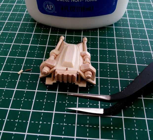 Para el montaje de la pistola de arpón, la pistola de montaje extremadamente pequeña aguja del pino fue pegado en el extremo posterior del fuselaje delante el artillero trasero. La pistola de arpón fue pegada encima de la pistola de montaje para terminar el modelo de palo de paletas mini snowspeeder.