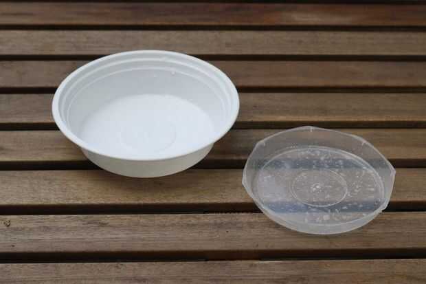 Si quieres hacer una tapa para su embarcación, usted también necesitará encontrar envases de plástico para la tapa de la forma. Si los lados de su contenedor exterior están relativamente rectos (no afilado) puede utilizar el mismo recipiente para formar una tapa. La figura que quieres hacer tu tapa alrededor de 2" de profundidad. Usted también necesitará encontrar un contenedor que es el mismo diámetro que la parte exterior de la tapa para su molde interior (quiere hacer una muesca en la tapa que se ajuste alrededor de la parte superior de su contenedor plástico. Porque las paredes de mi envase eran cónicos, solía un recipiente de plástico diferentes molde de la tapa para mi embarcación.