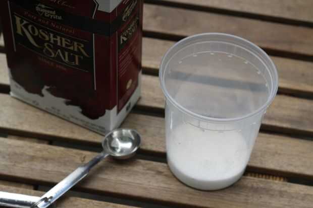 Hacer una solución de sal- llene su molde interior con agua y 1/2 pulgada del borde. Medir la cantidad de agua que se necesita para llenar su contenedor. 3T de sal por cada taza de agua y remover para disolver. Vierta la solución de sal en molde interior. Coloque la tapa plástica (si tiene uno) en molde interior. Cuidadosamente transfiera el molde interior en el molde exterior.