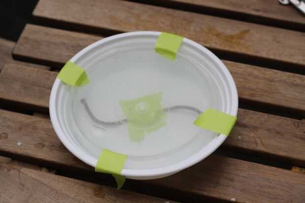 Formar y llenar el molde para la tapa. Use la misma técnica para darle forma a la tapa como hiciste el barco principal. Llene el molde interior con agua salada y llenar cuidadosamente el molde exterior con agua dulce. El molde interior de la tachuela en el centro y transferir la cosa entera en el congelador durante un mínimo de 4 horas.