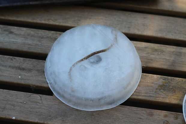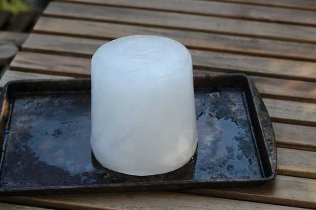 Desmoldar la tapa de. Utilizar la misma técnica como lo hizo el buque (solamente no necesita retomar el envase de plástico de la tapa.) Voltee la tapa para que el mango quede hacia arriba. Utilice un robusto tijeras cuchillo o cocina cuidadosamente empezar a recoger en el hielo en el centro de la tapa de la botella de agua. Trabajando poco a poco se consiguen los mejores resultados aquí. Una vez que tienes la mayor parte del hielo de la tapa de plástico, vierta un poco de temperatura agua en el centro para ayudar a derretir el plástico de la tapa de hielo. Puede tomar un poco de paciencia, pero eventualmente podrás quitar la tapa de plástico y la cinta adhesiva. He encontrado que un par de pinzas fue útil jalando la tapa de plástico. Una vez que su tapa es gratuito, volver al congelador. (Recomiendo no establecer en este punto en la parte superior del recipiente de hielo, que puede tener la tendencia a congelar todo cerrado.
