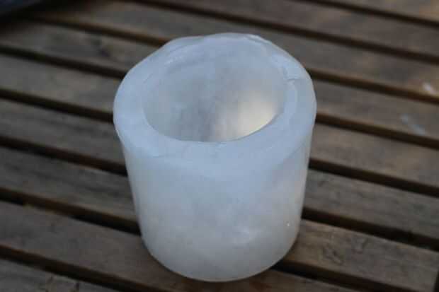 Desmoldar el buque. Dependiendo de cuánto tiempo dejaste tu recipiente para congelar y frío el congelador está, la pieza exterior de hielo se debe congelar sólida mientras que el interior será líquido o granizado. (Si parece sólido, sólo asoman en él con un tenedor y lo más probable es que fácilmente se reducirá a papilla). Echar o sacar la salmuera en el contenedor del centro. Deje su moldeado hielo hacia fuera a temperatura ambiente durante 5-10 minutos. (Esto se llama templar el hielo. Reduce las posibilidades de agrietarse su vaso de hielo todo cuando empiezas a manipularlo). Tirar en el contenedor interior y ver si todavía está congelado en su lugar. Si sale, gran - ¡ listo! Si no, vierta temperatura agua (no caliente!) en el centro y dejarlo reposar un minuto. Prueba otra vez y repita hasta que el envase de plástico se desliza hacia fuera fácilmente. Invertir y retirar el recipiente de hielo del recipiente exterior. ¿Cool, derecho? Ahora puedes enjuagar el recipiente salado y volver a su acogedor de hielo. En este punto, puede llenar su refrigerador de helados o cualquier otros congelados tratan plan para almacenar en el congelador. Nuevamente su buque congelador. Usted puede elegir o bien sacar su buque su envase exterior ahora, o que lo mantenga allí para el almacenamiento en el congelador.
