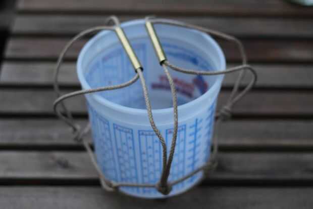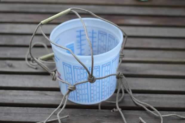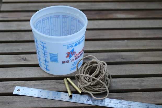 - Longitudes de corte 4 de guita. Mi diámetro 6" y 8" de altura barco, usé 5' pedazos largos de hilo (la longitud que usted necesita puede variar basada en el tamaño de su embarcación y el grosor de tu guita).