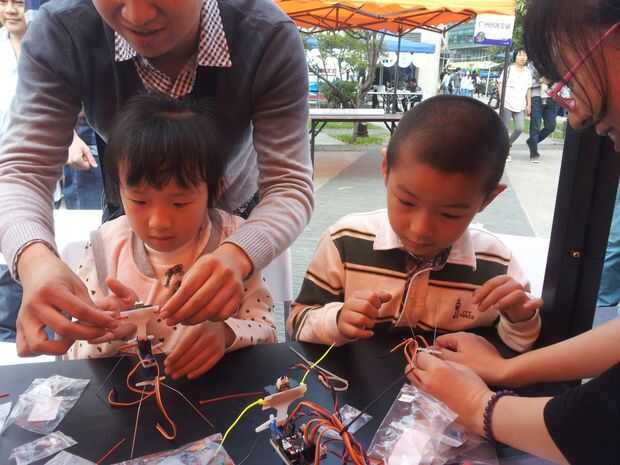 Taller durante el carnaval de la fábrica en Shanghai: http://letsmakerobots.com/node/38849