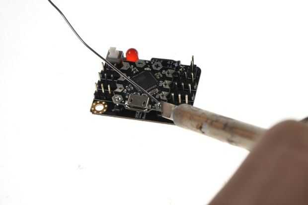 Necesita soldar las fotos para "D9", "D10", "D11", "A0", "A1" y "A2" así como las clavijas de dos alimentación marcadas con "+" y "-".