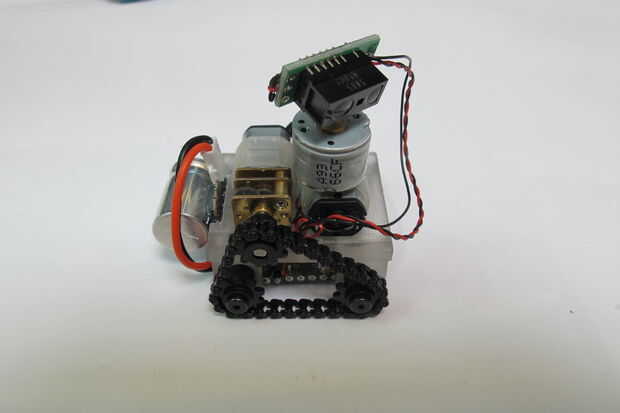 Mediante la adición de un motor de pasos pequeños como este de amazon (http://www.amazon.com/1000RPM-Phase-Metal-Stepper-Silver/dp/B00PZYKNLC?ie=UTF8 & psc = 1 & redirect = true & ref_ = oh_aui_search_detailpage) una capacidad de barrido se puede Agregar al sensor de infrarrojos. Me lo paso a paso de alambre directamente al Mini Pro y no utiliza un controlador en aras del ahorro de espacio.