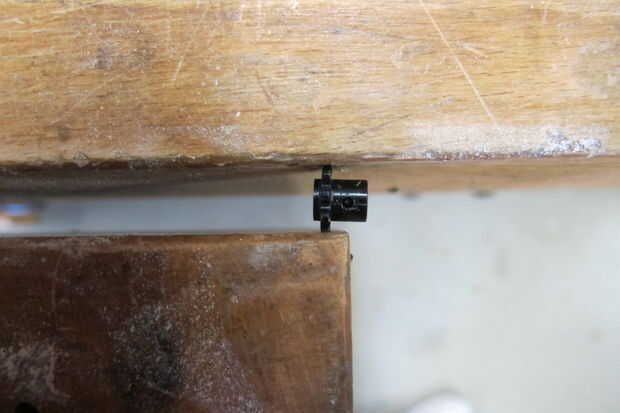 Utilicé una pinza de madera para sostener la rueda dentada y una broca era un poco más pequeña que el tamaño de tornillo. Al atornillar por primera vez me aseguré de llegar lo mas recto posible.