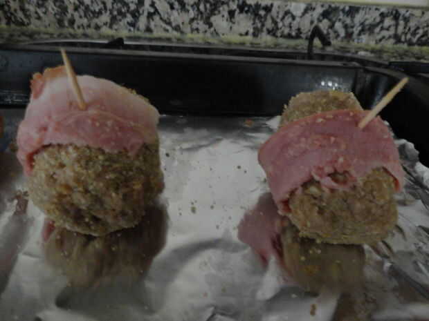 Envolver con una tira de tocino y colocar un palillo, para que el tocino no escapa, porque nadie quiere que (hmmm bacon!!!!).