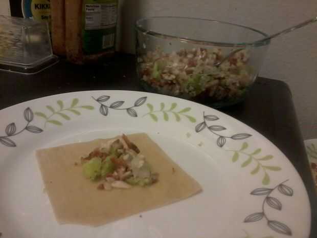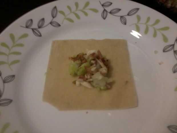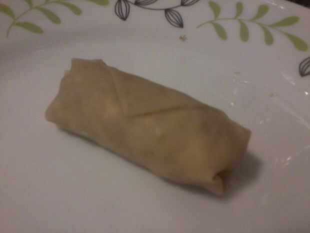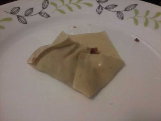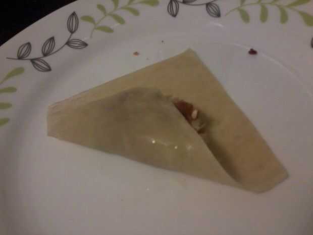 Doble una esquina sobre el relleno, envolver alrededor del relleno.