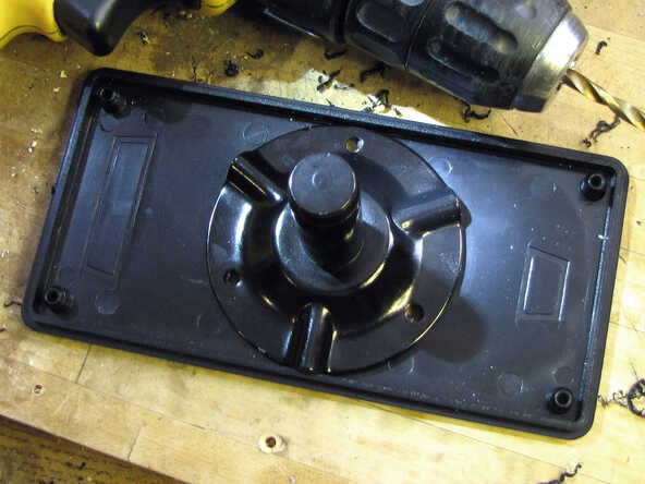 Desmontar la cámara el ROV y luego retire la base de montaje. Utilice la placa de montaje como plantilla, como antes, hacer un triángulo de 5/32"-diámetro de los agujeros en el centro de la tapa de la caja, como se muestra.