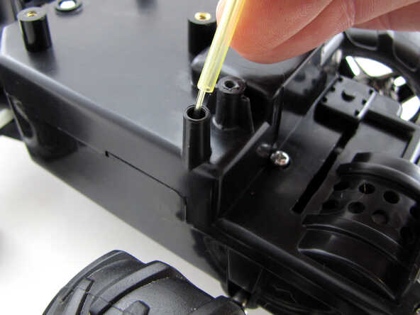 Si desea realizar modificaciones cosméticas en el chasis, ahora es un buen momento. Me gustó el color plástico desnudo del tubo aéreo antena, así que cubrí en tubería de encogimiento de calor negro. También pinté los ejes de rueda de piso negro para cubrir el cromo brillante.