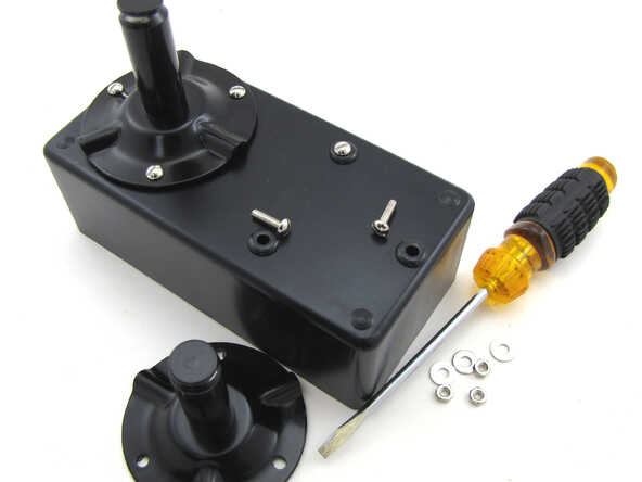 Ahora, abra el compartimiento de la electrónica retirando los 4 tornillos, como se muestra, y levantando la tapa de plástico suavemente y. La antena de cable flexible, que se rosca a través de un agujero en la tapa, debe deslizarse fuera de la base como haces esto.