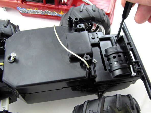 La antena de la ruta a través del puerto en la cubierta de compartimiento de la electrónica, y luego vuelva a colocar la tapa al chasis del vehículo con los tornillos originales.