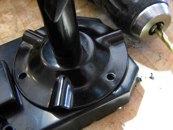 TIP: Usted puede encontrar más fácil de utilizar el taladro a través de la placa base si se quita primero la Junta de rótula de montaje de cámara en la parte superior del tallo. Simplemente girar la mariposa todo el camino de salida y todo el conjunto se desprenderá.