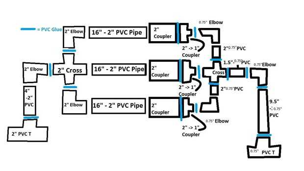 Construcción consiste principalmente en longitudes de corte de PVC, todo encaje y perforación.