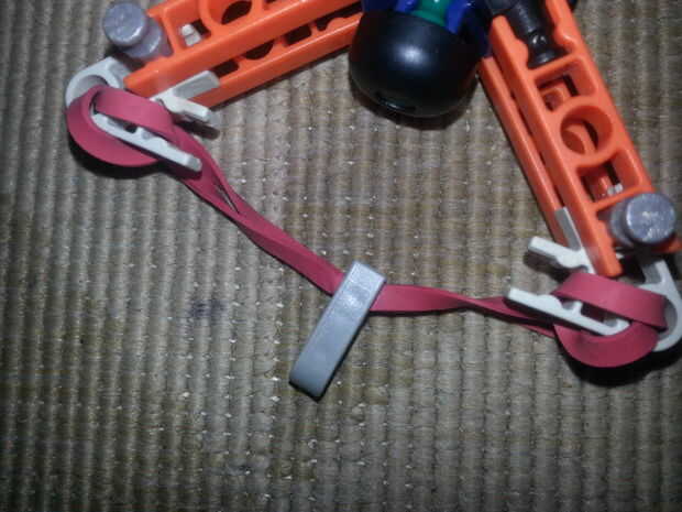 es una eslinga de tiro que hicimos para no tener que utilizar 3 personas para lanzamiento de un lanzador de globos de agua típico.  Utiliza tubos de PVC como las columnas y les tamaño adecuadamente por lo que podrían deslizarse sobre las patas de apo