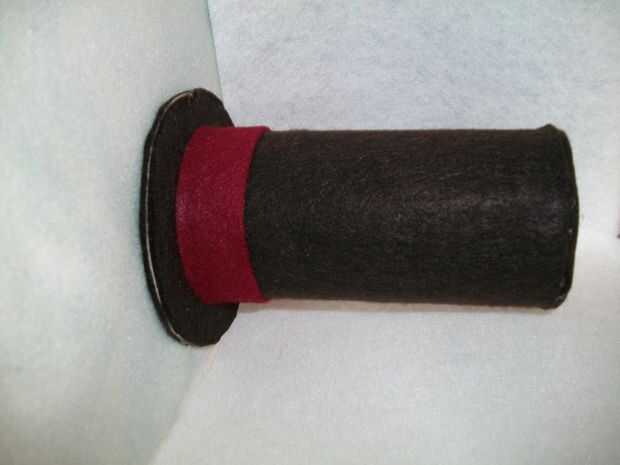 basado en instrucciones que se encuentran y http://overthecrescentmoon.blogspot.com/2011/08/mini-top-hat-tutorial.html. Para un próximo traje de llevar al Anime Central 2012 en Chicago. Cartón y cinta adhesiva en fieltro cosido fuera (por lo que pued