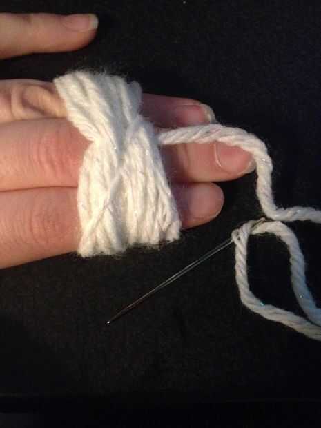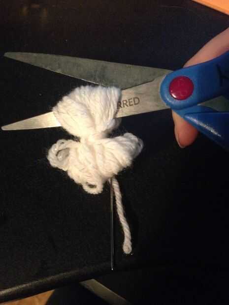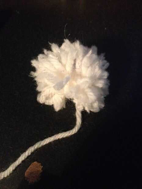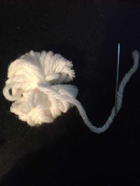 Hacer pom pom blanco y coser a la parte superior del sombrero