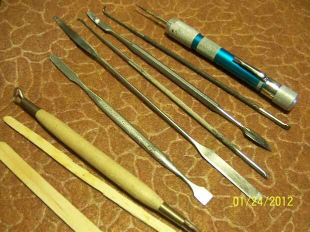 Estas son algunas de mis herramientas de escultura que he adquirido con los años. Pero sobre todo usaba mis manos para este pequeñín. Excepción de su nariz.