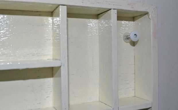 - Montar los estantes a la pared. Mi caja de madera tenía ya cuatro; uno en cada esquina. Por lo tanto me decidí a atornillar a la pared.