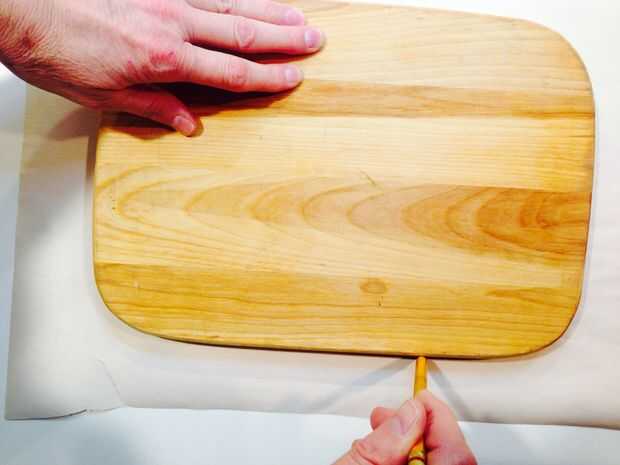 Pone tabla de cortar en el papel, traza alrededor de él y cortar.
