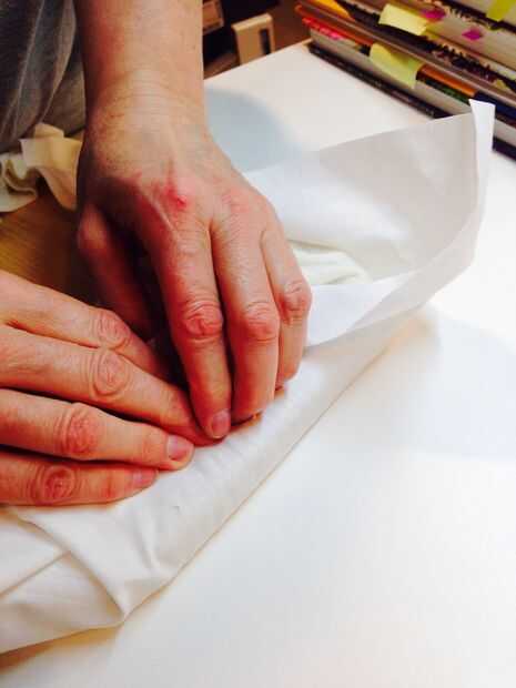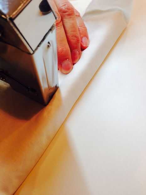 7. trabajo siguen uniformemente, en la plenitud y asegure la tela y la guata con grapas.