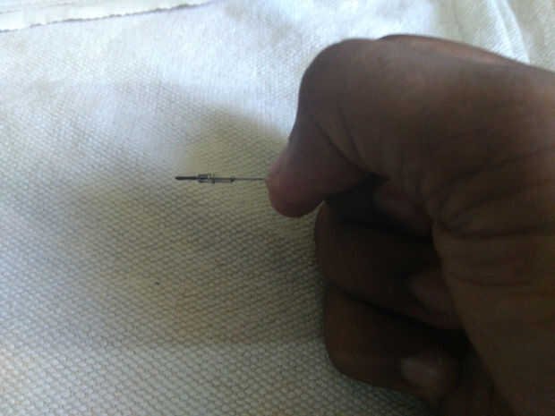 Separar la punta de la pluma y corte en dos mitades de tal manera que la broca pasa a través de la punta.