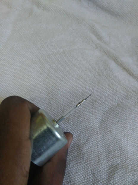 Cortado el pedacito de taladro extra de su parte posterior e inserte la punta modificada en la recarga que se une al motor.