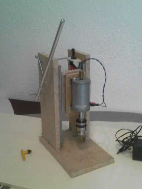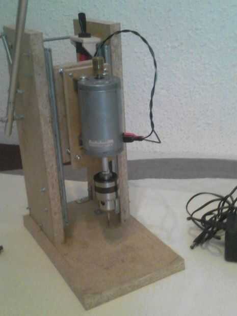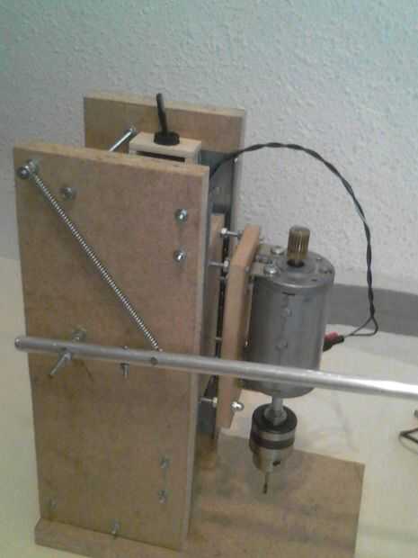 El principio de funcionamiento es simple, en dos guías de diapositivas (tipo cajón) pusieron la base para el taladro.