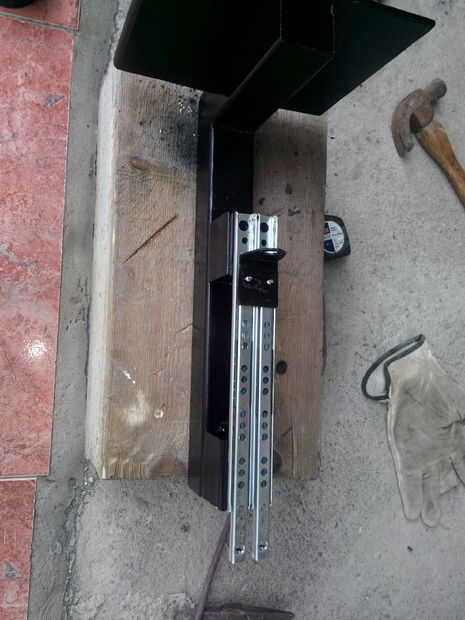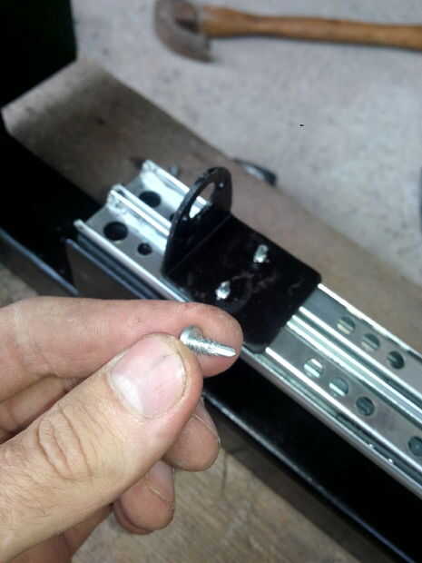 Cuando la pintura se haya secado atornillar los deslizadores viene a continuación. Pero primero debe atornillar el soporte para el motor (o taladro) en los cursores... Todo debe ir muy fácil con tornillos autorroscantes.