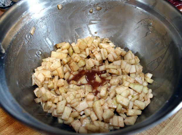 Le dan una buena mezcla y asegúrese de que todos los de la manzana es totalmente recubierto con la dulce bondad.
