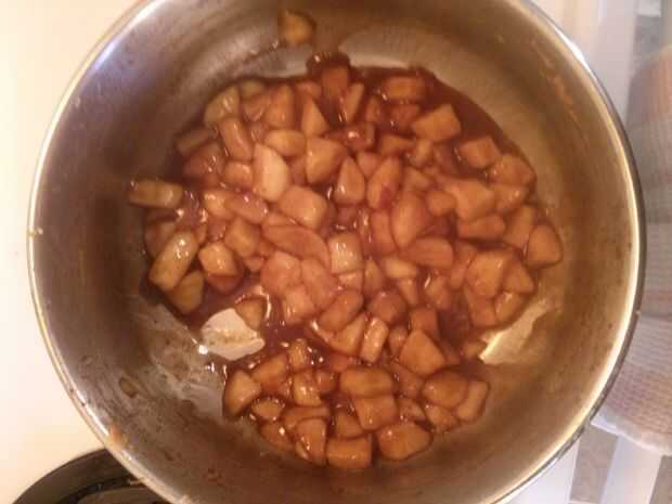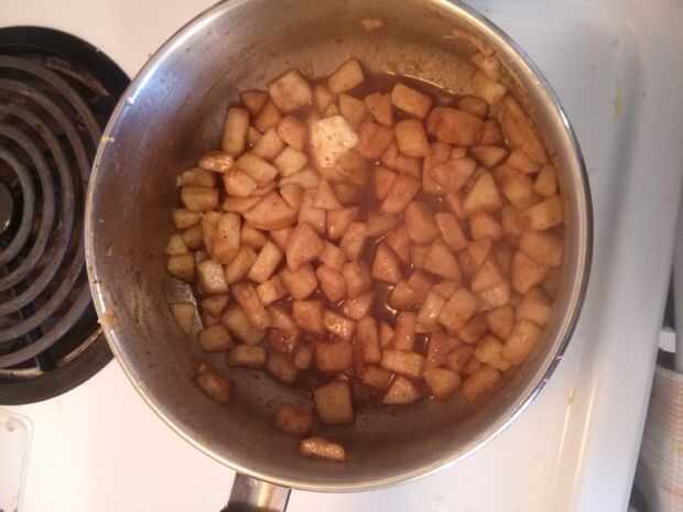 Esto cociné a fuego medio hasta que la manzana era agradable y suave. Deje esta mezcla se enfríe un poco.